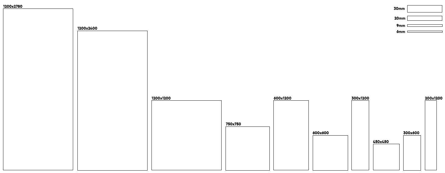 | Size | 200x1200, 300x600, 450x450, 300x1200, 600x600, 600x1200, 750x750, 1200x1200, 1200x2400, 1200x2780 |