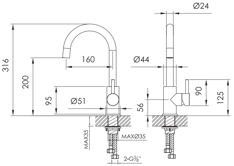 Slimline basin mixer